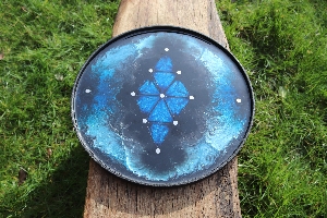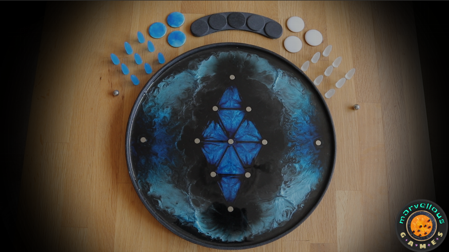 Tempest #1, a first iteration design, is a deep rich storm of metallic shimmering and shining blues that delight the eye but are surprisingly hard to capture on camera! If you like the photos you will LOVE the reality of this design. Another deluxe edition with full lattice work in the deep blue diamond. Every board comes with two balls, two sets of meekones (markers), two sets of scoring tokens and a scoreboard. See how to play Kapture 9 here.